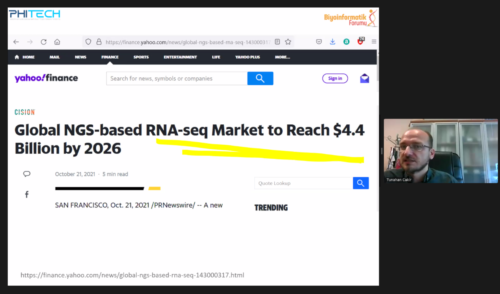 Biyoinformatik Forumu – 2021’de, “Klinikte Transkriptom” başlığı altında, “RNA-Seq ile DNA’ya ek hangi bilgileri elde edebiliyoruz?”, “Hastalıklarda tanı, tedavi ve izleme teknolojilerinde transkriptomun mevcut ve yakın gelecekteki yeri nedir?”, “Transkriptomun araştırma sonuçlarında net olarak görülen katma değerini kliniğe taşımada hangi noktadayız?” vb. sorularına cevap niteliğinde konuşmalar dinledik. Forumun tüm içeriğini, şirketimizin YouTube kanalından izleyebilirsiniz.
